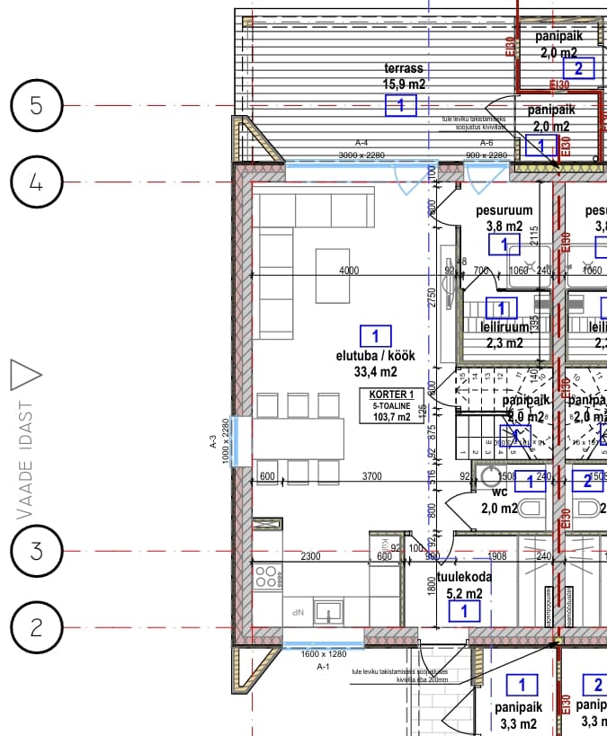 - 5-toaline ridaelamuboks (103,7 m²)